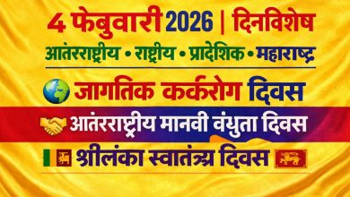 ४ फेब्रुवारी २०२६ | दिनविशेष – आंतरराष्ट्रीय • राष्ट्रीय • प्रादेशिक • महाराष्ट्र 🌍 जागतिक…