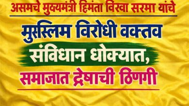 🔥 असमचे मुख्यमंत्री हिमंता बिस्वा सरमा यांचे मुस्लिमविरोधी वक्तव्य — संविधान धोक्यात, समाजात द्वेषाची ठिणगी 🔥 असमचे मुख्यमंत्री हिमंता बिस्वा…