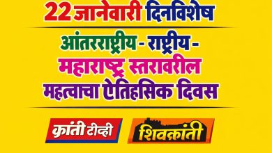 🔥🔥 २२ जानेवारी दिनविशेष | आंतरराष्ट्रीय–राष्ट्रीय–महाराष्ट्र स्तरावरील महत्त्वाचा ऐतिहासिक दिवस 🔥🔥 २२ जानेवारी हा दिवस जगाच्या इतिहासात अत्यंत महत्त्वाचा मानला…