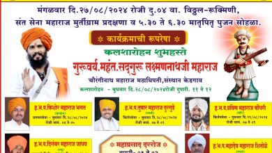 2) श्री संत सेना महाराज मुर्ती प्राणप्रतिष्ठापणा व कलशारोहन सोहळा त्या निमित्त अखंड हरिनाम सोहळा मंगळवार दि. २७/०८/२०२४ रोजी दु.०४…