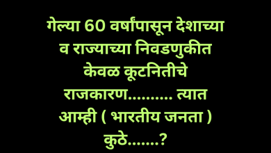गेल्या 60 वर्षांपासून देशाच्या व राज्याच्या निवडणुकीत केवळ कूटनितीचे राजकारण………. त्यात आम्ही ( भारतीय जनता ) कुठे…….? भाग — (3)…