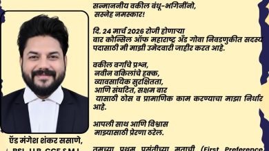 🔥 न्यायासाठी झुंजणारा वकील, बारसाठी नवी उमेद – ऍड. मंगेश ससाणेंना पहिल्या पसंतीचे मत द्या! 🔥 बार कौन्सिल ऑफ महाराष्ट्र…