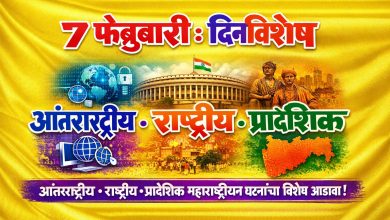 📅 ७ फेब्रुवारी : दिनविशेष आंतरराष्ट्रीय • राष्ट्रीय • प्रादेशिक (महाराष्ट्र) 🌍 आंतरराष्ट्रीय दिनविशेष (१ मुद्दा – सविस्तर) 🌐 जागतिक…