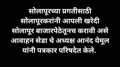 प्रेस नोट SOLAPUR ELECTRONICS SEDA DEALERS ASSOCIATION Surana Market. Mechanic Chowk, Solapur. सेडा द्वारा सोलापूरकरांना आवाहन सोलापूर – सोलापूरच्या…