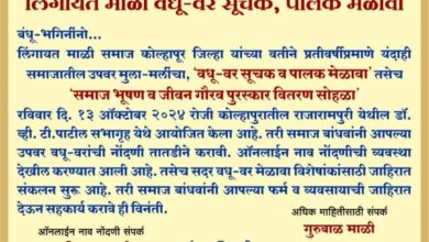 रविवार १३ ऑक्टोबर २०२४ माळी समाज भव्य राज्यव्यापी वधूवर मेळावा २०२४ लिंगायत माळी समाज कोल्हापूर जिल्हा लिंगायत माळी वधू-वर सूचक,…