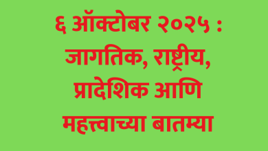 ६ ऑक्टोबर २०२५ : जागतिक, राष्ट्रीय, प्रादेशिक आणि महत्त्वाच्या बातम्या
