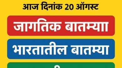 आज दिनांक: ठळक बातम्या आंतरराष्ट्रीय बातम्या देशातील बातम्या महाराष्ट्रातील ठळक बातम्या