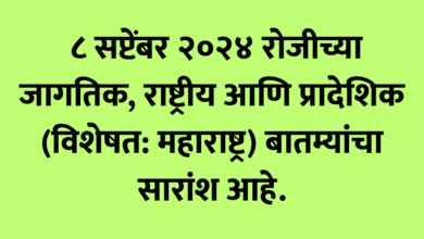 ८ सप्टेंबर २०२४ रोजीच्या जागतिक, राष्ट्रीय आणि प्रादेशिक (विशेषत: महाराष्ट्र) बातम्यांचा सारांश आहे.