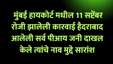 मुंबई हायकोर्ट मधील 11 सप्टेंबर रोजी झालेली कारवाई हैदराबाद आलेली सर्व पीआय जनी दाखल केले त्यांचे नाव मुद्दे सारांश