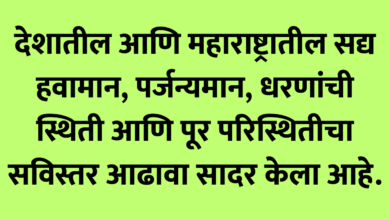 देशातील आणि महाराष्ट्रातील सद्य हवामान, पर्जन्यमान, धरणांची स्थिती आणि पूर परिस्थितीचा सविस्तर आढावा सादर केला आहे.