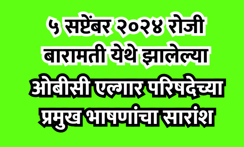 ५ सप्टेंबर २०२४ रोजी बारामती येथे झालेल्या ओबीसी एल्गार परिषदेच्या प्रमुख भाषणांचा सारांश खालीलप्रमाणे आहे.
