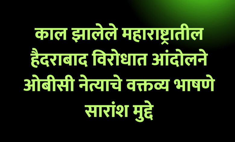 काल झालेले महाराष्ट्रातील हैदराबाद विरोधात आंदोलने ओबीसी नेत्याचे वक्तव्य भाषणे सारांश मुद्दे
