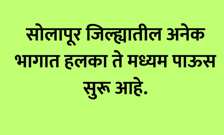 सोलापूर जिल्ह्यातील अनेक भागात हलका ते मध्यम पाऊस सुरू आहे.