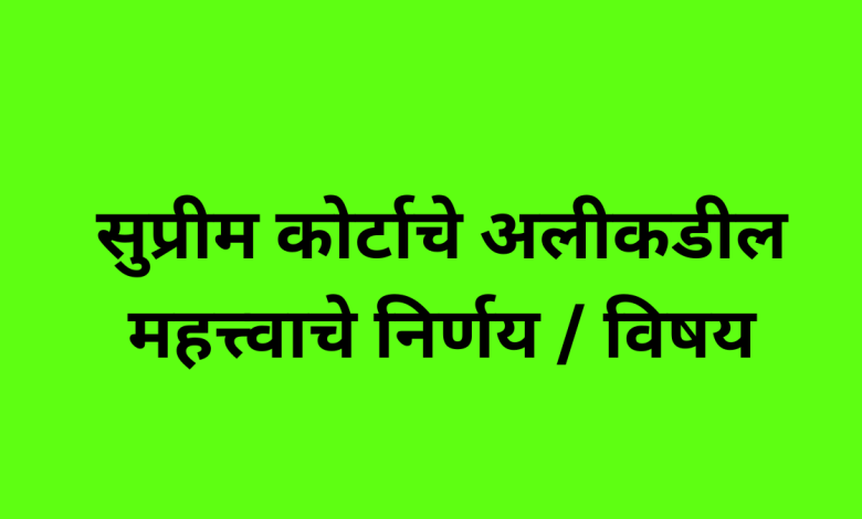 सुप्रीम कोर्टाचे अलीकडील महत्त्वाचे निर्णय / विषय