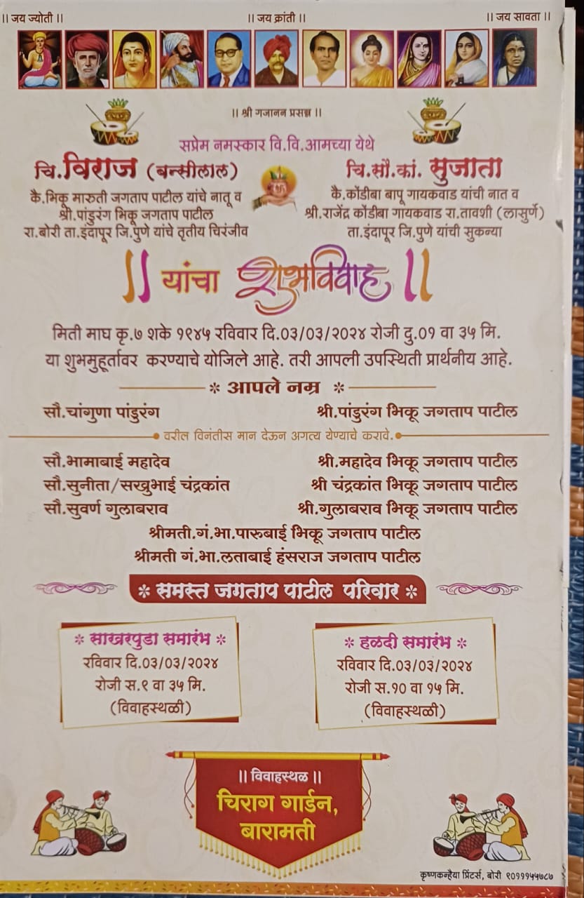 मिती माघ कृ.७ शके १९४५ रविवार दि.०३/०३/२०२४ रोजी दु.०१ वा ३५ मि. या शुभमुहूर्तावर करण्याचे योजिले आहे. तरी आपली उपस्थिती प्रार्थनीय आहे.