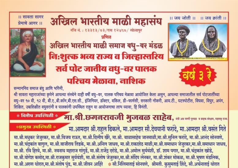 ♦ 1 1🌺 अखिल भारतीय माळी समाज वधु-वर मंडळाचा निःशुल्क भव्य राज्य व जिल्हास्तरिय सर्व पोटजातीय वधु-वर पालक परिचय मेळावा, नाशिक