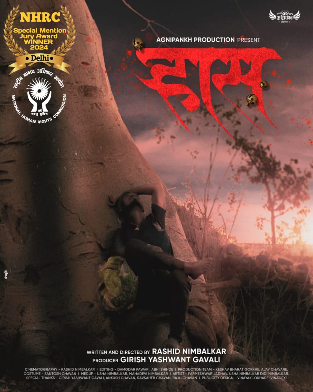 (NHRC)राष्ट्रीय मानवअधिकार आयोग, दिल्ली,भारत सरकार यांच्याकडून आयोजित करण्यात आलेल्या 9 व्या राष्ट्रीय लघुपट स्पर्धेत अग्निपंख प्रोडक्शन निर्मित रशीद निंबाळकर यांनी लेखन, दिग्दर्शन केलेल्या आणि निर्माता गिरीश यशवंत गवळी यांनी केलेल्या *”ऱ्हास” (*मूखपट*) या मराठी लघुपटाला राष्ट्रीय पुरस्कार जाहीर झाला आहे.भारतातून एकुण 139 लघुपट आल्या होत्या. *महाराष्ट्रातून* निवड झालेली *एकमेव लघुपट *”ऱ्हास”*. सोलापूर जिल्ह्यातील एक खेडेगाव पेनुर तालुका मोहोळ या ठिकाणचे नंदीवाले समाजामध्ये जन्माला आलेले एका भटक्या विमुक्त ओबीसी नंदीवाले हा समाज आज ही पालावर राहतो शिक्षणापासून राष्ट्रीय प्रवाहापासून आरोग्य पिण्याचे पाणी राहण्यासाठी घर नागरी सुविधा पासून कोसो लांब वंचित अशिक्षित भूमिहीन असलेल्या समाजातील एक तरुण शॉर्ट फिल्म बनवतो आणि त्याला इंटरनॅशनल अवार्ड मिळतो एक अभिमानाची गोष्ट आहे आम्हा ओबीसींना त्यांचा अभिमान वाटतो त्याच्या यशाबद्दल त्याला आणि त्याच्या टीमला त्याच्या पुढील कार्याला हार्दिक शुभेच्छा शुभेच्छुक राष्ट्रीय सत्यशोधक ओबीसी फेडरेशन राष्ट्रीय अध्यक्ष सत्यशोधक शंकरराव लिंगे शिवक्रांती टीव्ही न्यूज संपादक 73 87 37 78 01 हा नंबर आपल्या व्हाट्सअप ग्रुप मध्ये ऍड करा व्हिडिओ पोस्ट लाईक करा शेअर करा सबस्क्राईब करा फॉरवर्ड करा आयकॉन करा
