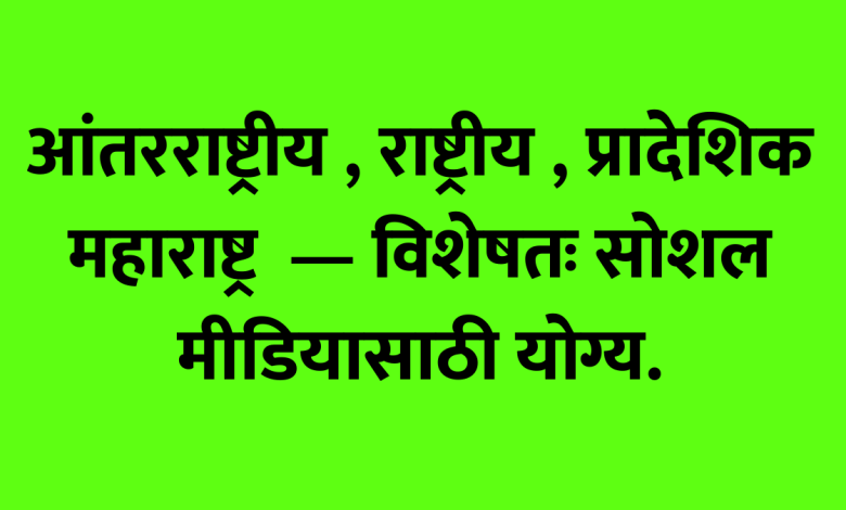 आंतरराष्ट्रीय, राष्ट्रीय , प्रादेशिक महाराष्ट्र — विशेषतः सोशल मीडियासाठी योग्य.