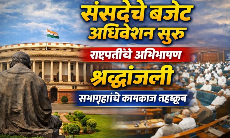 आज संसदेत बजेट अधिवेशनाची सुरुवात झाली. राष्ट्रपतींच्या अभिभाषणानंतर श्रद्धांजली कार्यक्रम पार पडला. पुढील दिवसांत आर्थिक सर्वेक्षण, केंद्रीय अर्थसंकल्प आणि महत्त्वाच्या विधेयकांवर चर्चा होणार आहे.