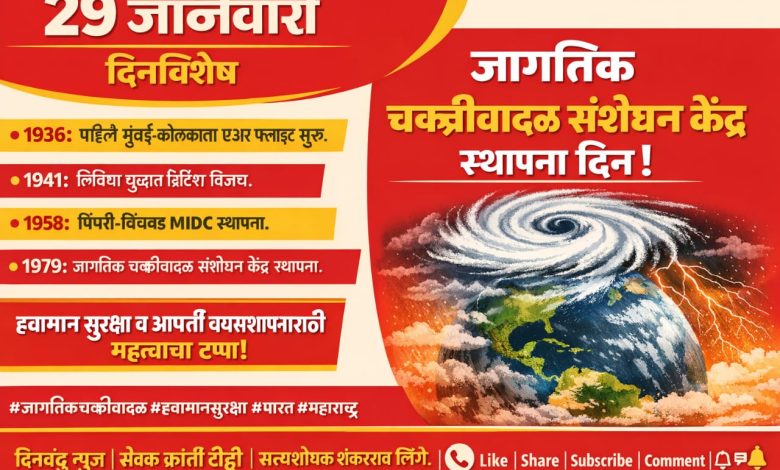 #29जानेवारी #दिनविशेष #जागतिकचक्रीवादळ #हवामानसुरक्षा #भारत #महाराष्ट्र #दिनबंधून्यूज #सत्यशोधकशंकररावलिंगे