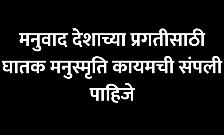 मनुवाद देशाच्या प्रगतीसाठी घातक मनुस्मृति कायमची संपली पाहिजे ही सर्व ओरिजनल भारतीयांची जबाबदारी स्त्रिजातीविषयी एवढी घाण पसरवणारं मनुस्मृती नावाचं पुस्तक बाबाहेबांनी जाळलं नसतं तर ते आजही स्त्रियांच्या डोक्यात भरवल्या गेलं असतं, तरीही काहींच्या डोक्यात ते अजूनही रुजलेलं आहेच