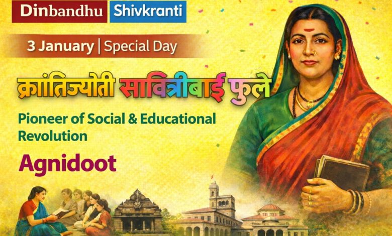 ३ जानेवारी हा दिवस केवळ एका थोर स्त्रीचा जन्मदिवस नाही, तर तो भारतीय समाजाला अज्ञान, अन्याय आणि गुलामगिरीतून मुक्त करण्याच्या संघर्षाचा ऐतिहासिक दिवस आहे. क्रांतीज्योती सावित्रीबाई फुले या आधुनिक भारतातील पहिल्या शिक्षिका, पहिल्या स्त्री समाजसुधारक आणि स्त्री-शिक्षणाच्या आद्यप्रवर्तक ठरल्या. त्यांचा जन्म ३ जानेवारी १८३१ रोजी सातारा जिल्ह्यातील नायगाव येथे झाला.