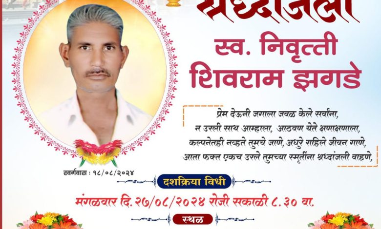 भावपूर्ण श्रध्दांजली स्व. निवृत्ती शिवराम झगडे