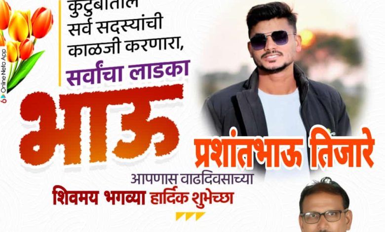 कुटुंबातील सर्व सदस्यांची काळजी करणारा, सर्वांचा लाडका भाऊ प्रतिक्षाक तिजारे आपणास वाढदिवसाच्या शिवमय भगव्या हार्दिक शुभेच्छा… शोभाराम भाऊराव तिजारे तालुका प्रमुख मु नेरी, ता मोहाडी, जिल्हा भंडारा, महाराष्ट्र राज्य