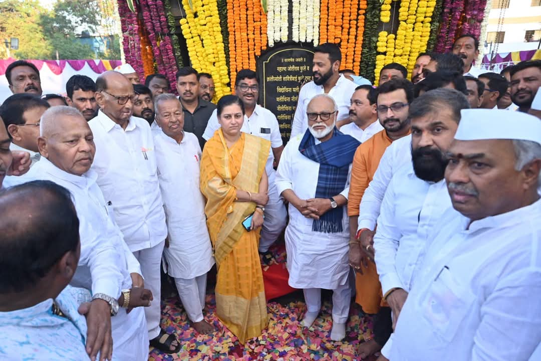मला आनंद आहे की, या ठिकाणी उभयंतांचा अतिशय देखणा पुतळा कृषी बाजार समितीने आणि पुतळा समितीने तुम्हा सगळ्यांच्या मदतीने आज या ठिकाणी उभा केला आहे. मला ठाऊक आहे की, या ठिकाणी आज चाकणला शेतीमालाचा व्यवहार मोठा आहे. इथे कांद्याची मोठी बाजारपेठ आहे. शेजारी केंद्र सरकारच्या कृषी खात्याचं कांदा, लसूण यांवर संशोधन करणारी संस्था आहे. पण आज सगळ्या जगामध्ये कांदा निर्यात करण्यासंबंधीची कामगिरी या भागातला हा कष्टकरी शेतकरी करतो त्या शेतकऱ्याचे दुखणे हे उभं आयुष्य महात्मा जोतिबा फुले यांनी मांडलं. आजच्या परिस्थितीमध्ये कांदा निर्यात असेल किंवा कठोर प्रश्न असो त्यावर केंद्र सरकारने ड्युटी बसवली आणि त्याची झळ आज काळ्या आईशी इमान राखणाऱ्या कष्टकरी शेतकऱ्याला मोजावी लागते. ते घालवायचे असेल तर राज्यकर्त्यांनी महात्मा जोतिबा फुले यांचे आदर्श पुढे ठेवावे आणि अशा प्रकारचे शेतकऱ्यांच्या हिताच्या विरुद्ध येणारे जे कोणते निर्णय असतील, कायदे असतील ते नष्ट करायचे, संपवावेत आणि थांबवावेत हीच महात्मा ज्योतिबा फुले यांना खऱ्या अर्थाने आणि सावित्रीबाईंना एक प्रकारची श्रद्धांजली होईल.