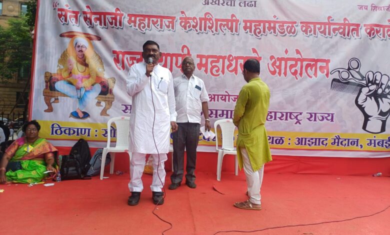 शंकरराव लिंगे: नाभिक समाज मोर्चा धरणे आंदोलन आझाद मैदान मुंबई सेना महाराज विकास महामंडळास 1000 कोटी रुपये द्यावे