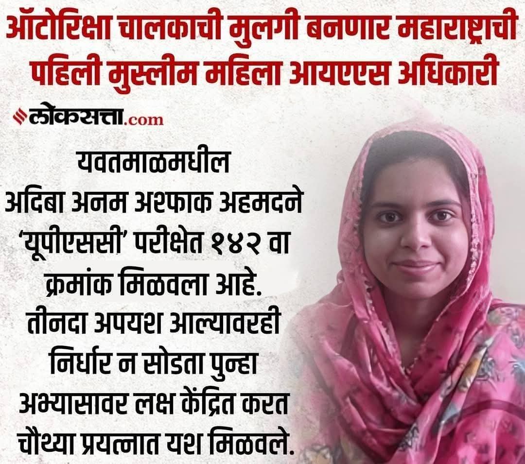 - संपादकियमहाराष्ट्र दिनाच्या कामगार दिनाच्या यूपीएससी मध्ये उत्तीर्ण झालेल्या सर्व समाज रत्नाचे हार्दिक अभिनंदन हार्दिक शुभेच्छा शुभेच्छुक संयुक्त महाराष्ट्राच्या लढ्यामध्ये ज्यांनी ज्यांनी हुतात्मे पत्करले ज्यांनी ज्यांनी सक्रिय सहभाग घेतला त्या सर्व लढवय्या महाराष्ट्राच्या स्वाभिमानी नेत्यांचे सैनिकांचे आभार मानतो अभिनंदन करतो कौतुक करतो त्यांना धन्यवाद देतो कामगार चळवळीचे जनक रविवार सुट्टीचे प्रणेते मुंबईतील 1892 ची दंगल आटोक्यात आणणारे त्यानंतर मुंबईमध्ये 100 वर्षे दंगल झाली नाही 1992 लाच नंतर झाली होती 1896 ला आलेली प्लेगची साथ त्यामध्ये मुंबईमध्ये सर्व समाजाची सेवा वैद्यकीय मदत आरोग्य शिबिर मधून मदत करणारे त्यातच त्यांचे लेगाची लागण झाल्याने जनतेची सेवा करत असताना निधन झाले असे कामगार नेते समाज सुधारक दीनबंधू पहिलं वर्तमानपत्र चालविणारे सत्यशोधक नारायण मेघाजी लोखंडे जे शहीद झाले त्यांना मी विनम्र अभिवादन करतो सत्यशोधक शंकरराव लिंगे खाली एक फोटो दिलेला आहे तो यवतमाळच्या एका रिक्षा चालकाची मुलगी अदिबा अहमद