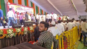 कार्यक्रमाला महिलांची गर्दी लक्षणीय होती सर्व महिला आणि त्यांच्याबरोबर आलेले काही पुरुष हे प्रामुख्याने जामखेड कर्जत रोहित पवार यांच्या मतदारसंघातील होते त्यांना जाण्या येण्याची खाण्यापिण्याची गाडी घोड्याची चहा पाण्याची व्यवस्था रोहित पवार यांनी स्वखर्चाने उत्तम केलेली होती प्रत्येक गटाच्या सोबत एक पुरुष मॉनिटर म्हणून होता तो मॉनिटर सर्व महिलांना कंट्रोल करत होता खासदार अमोल कोल्हे यांचे हेलिकॉप्टर खराब हवामानामुळे उशिरा आले त्यामुळे सभेला खूप वेळ झाला होता महिला आणि पुरुष एका जागेवर बसून कंटाळले होते परंतु मॉनिटर त्यांना वारंवार सूचना करून जागेवर बसवत होता सावता महाराजांची भावनिक साथ घालून त्यांना शपथ वगैरे देत होता काही महिला उठबस करू लागल्या सभेला आलेली लोकं कंटाळून गेली खाली बसायला खडबडीत जागा होती नाविलाजाने काही लोक बसून होते त्यांच्यामध्ये अजिबात उत्साह नव्हता मुख्य भाषण आमदार रोहित पवार रमेश वसेकर यांचे झाल्यानंतरही चार वाजेपर्यंत कोल्हे साहेब आले नाहीत तोपर्यंत मुख्य भाषणा नंतर पाच-सहा जणांची भाषण झाली कोणालाही भाषण ऐकण्यामध्ये रस नव्हता रोहित पवार यांच्या भाषणानंतर ही अनेक लहान मोठ्या कार्यकर्त्यांची भाषणे झाली भाषण चांगली होती कार्यक्रम पाच तास लांबला होता प्रत्येकाला केव्हा एकदा सभा संपते न आपण गावाला जातो असं झालं होतं भाषणा मध्ये रोहित पवार पुजाऱ्यांचे कौतुक खूप करत होते आणि बाकीची सर्व रोहित पवारांचे कौतुक खूप करत होते एकंदर जामखेड कर्जत विधानसभेचा प्रचारच आज सभेमध्ये जास्त होता शेवटी कोल्हे साहेब आले कोल्हे साहेबांचे भाषण झाले त्यावेळेला उत्साह निर्माण झाला नंतर पाच वाजेपर्यंत कार्यक्रम चालला पाच वाजता भक्तनिवास उद्घघाटनाचा कार्यक्रम झाला सभेला आलेल्या प्रत्येका नाएक सावता महाराजांचा फोटो आणि फोटो ठेवण्यासाठी कापडी पिशवी देण्यात आली सावता महाराज यांच्या बरोबर रोहित पवार यांचा ० फोटो 9छपून प्रचार करण्यात 9आला होता रोहित पवार यांनी या अगोदरही रमेश वसेकर पुजारी यांच्या जागेत वारकरी ध्वज फडकवला होता तो ही मंदिराजवळ न फडकवता मंदिरापासून एक किलोमीटर अंतरावर हायवे रोड लगत फडकवला होता दानशूर आमदार रोहित पवार यांनी रमेश पुजारी यांना गाठले आणि त्यांना चार चाकी नवी कोरी गाडी फिरण्यासाठी दिली त्यामुळे रमेश पुजारी यांनी रोहित पवार यांच्या कर्जत जामखेडमतदार संघात सावता महाराज यांच्या विचाराचा प्रचार प्रसार करताना रोहित पवार ना मतदान करण्या ची गळ घातली त्यामुळे रोहित पवार पहिल्यांदा नवख्या जामखेड कर्जत मतदारसंघांमध्ये निवडून आले सावता महाराज आणि माळी समाजाचा वाढता पाठिंबा बघून त्यांनी रमेश पु