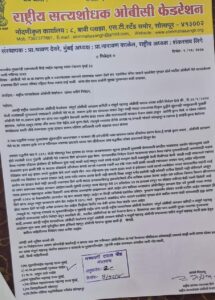 माननीय मुख्यमंत्री एकनाथजी शिंदे साहेब उपमुख्यमंत्री देवेंद्रजी फडणवीस साहेब यांना ओबीसी नेते राज्याचे अन्न व नागरी पुरवठा मंत्री माननीय छगनरावजी भुजबळ साहेब यांनी ओबीसी आंदोलनकारी याची का करते यांना. उच्च दर्जाची सुरक्षा पुरवावी अशी पत्राद्वारे लेखी मागणी केली