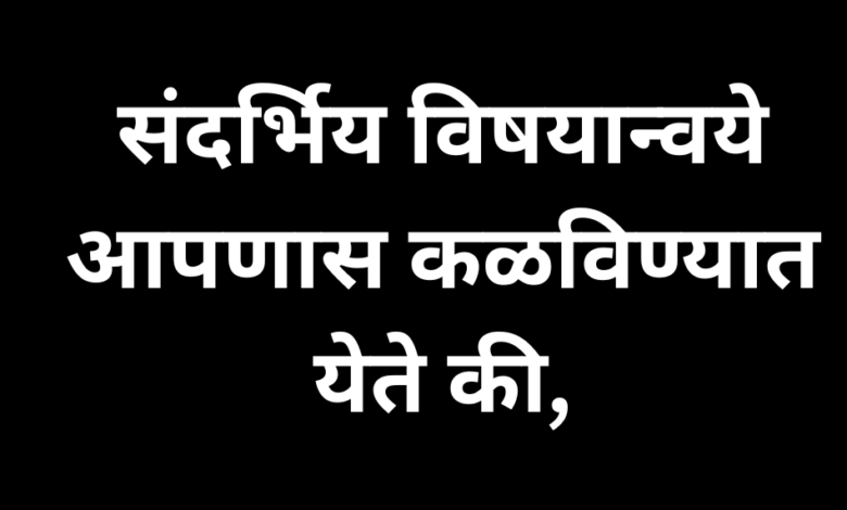 संदर्भिय विषयान्वये आपणास कळविण्यात येते की,