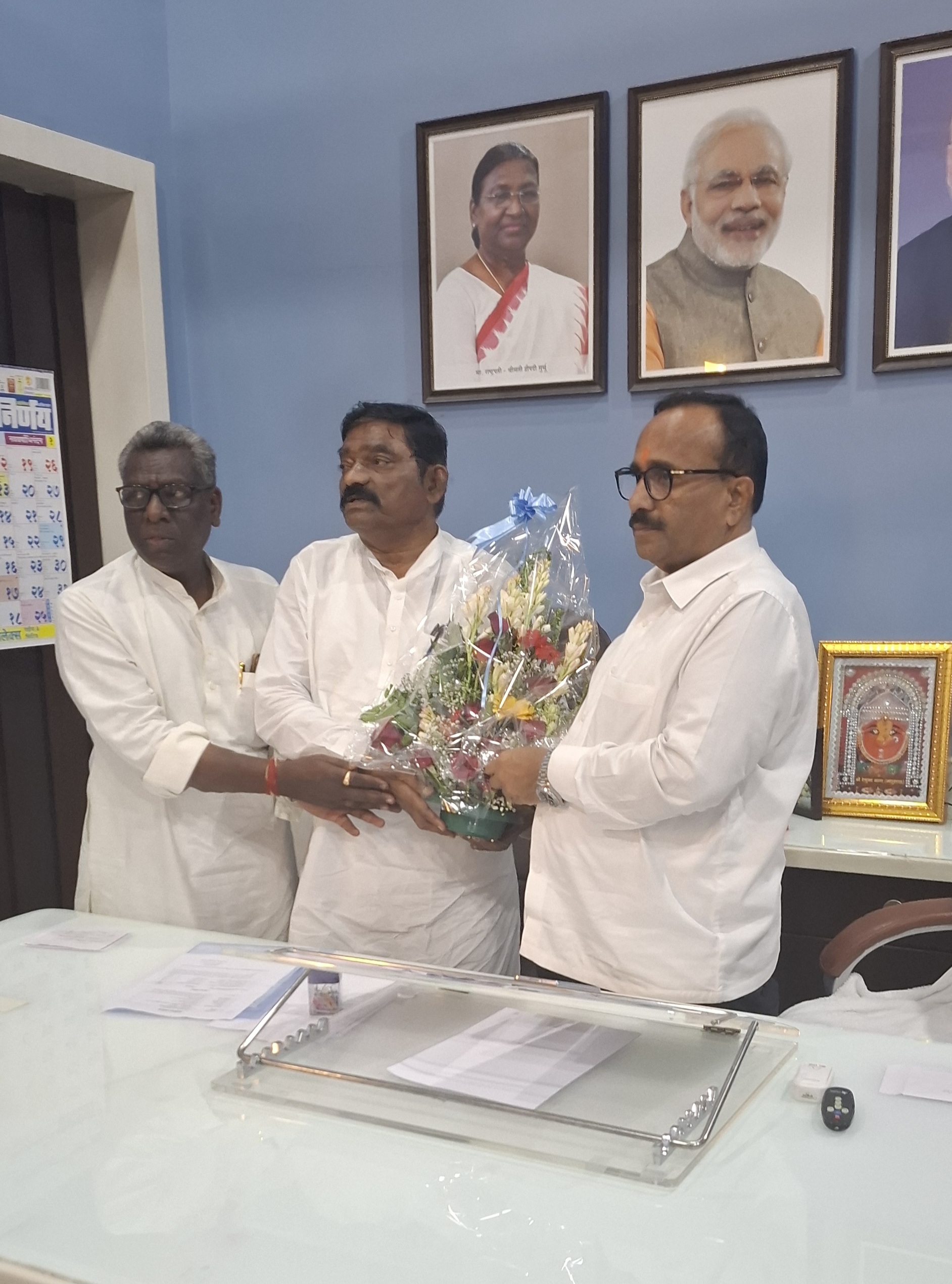 ओबीसी विकास मंत्री म्हणून दुसऱ्यांदा निवड झाल्याबद्दल ओबीसी नेते अखिल भारतीय माळी महासंघाचे राष्ट्रीय अध्यक्ष सत्यशोधक शंकररावजी अण्णा लिंगे यांच्यासह अखिल भारतीय माळी महासंघाचे दक्षिण तालुकाध्यक्ष पंचप्पा धनशेट्टी, ओबीसी सोलापूर शहराध्यक्ष जगदीश राजे यांनी पुष्पगुच्छ देऊन हार्दिक स्वागत केले.