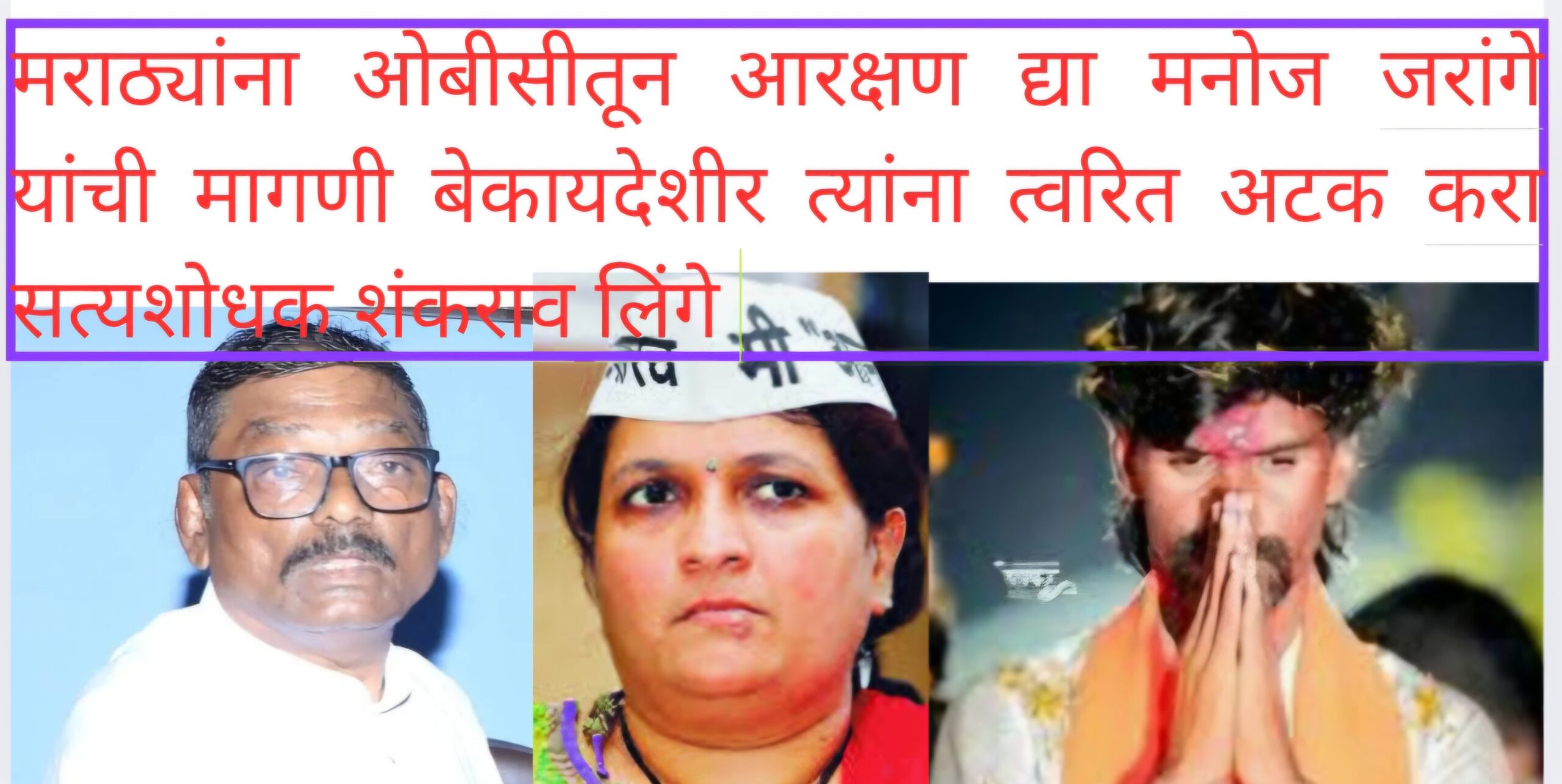 .. मराठ्याना ओबीसी तुन आरक्षण द्या जरांगे पट लची मागणी बेकायदेशिर त्यांना त्वरीत अटक – करा सकल ओबीसीं ची मागणी !