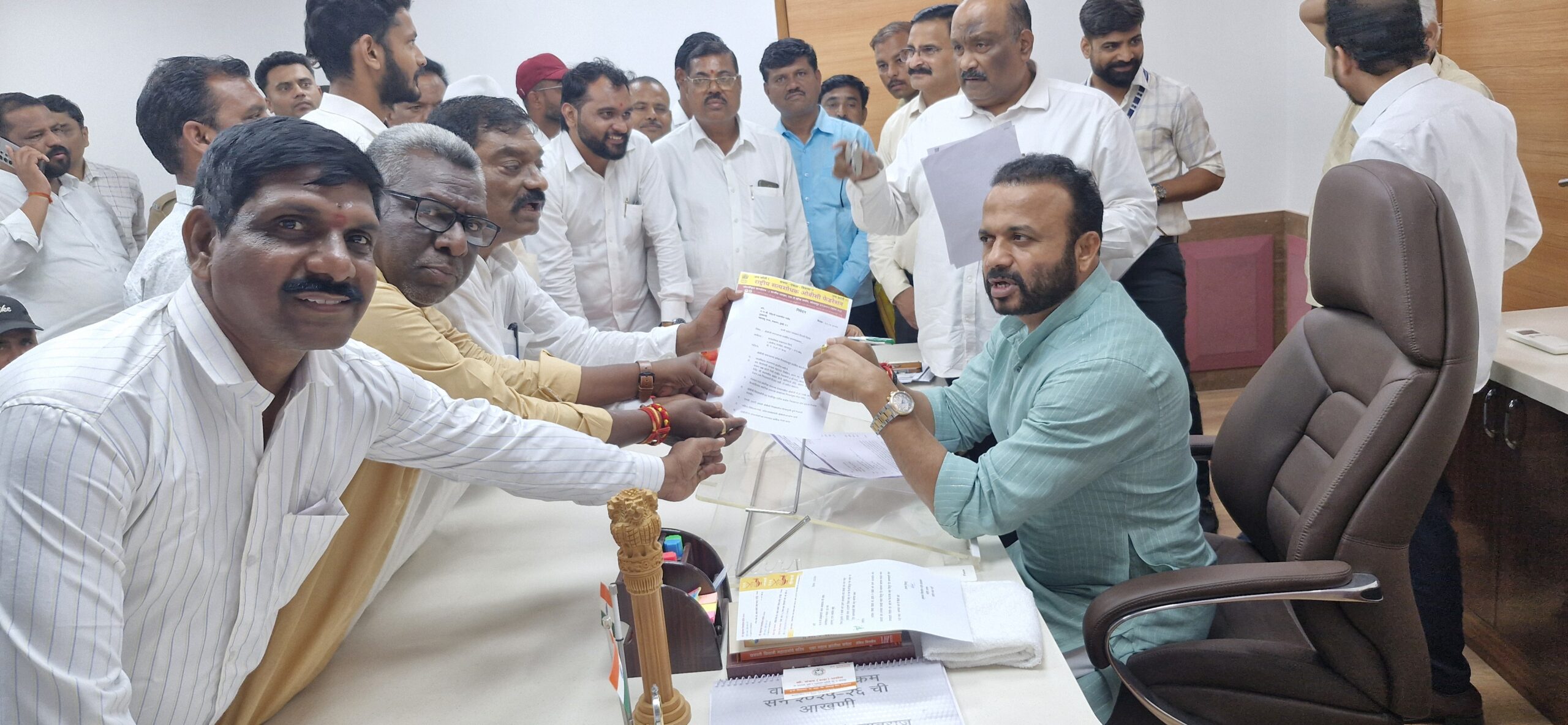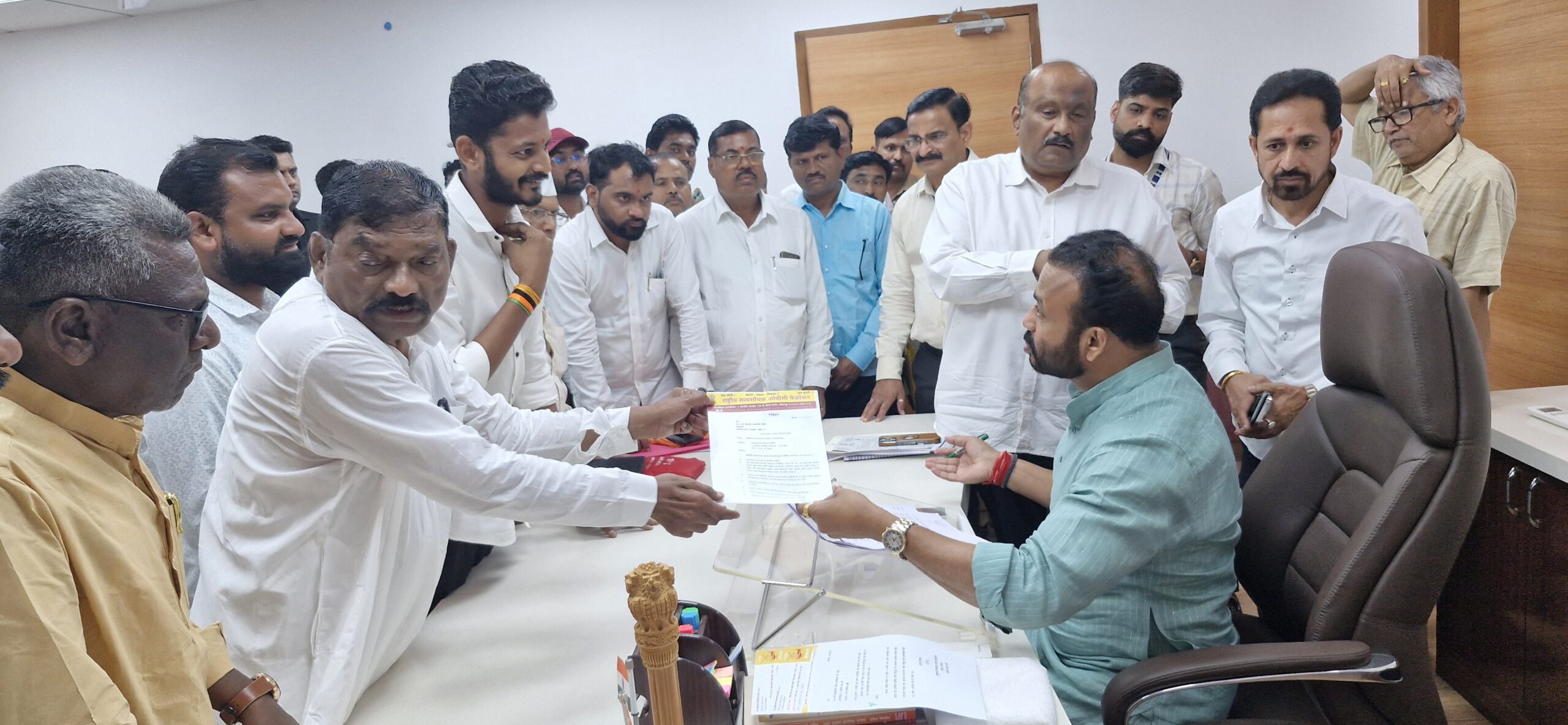 मुख्यमंत्री माननीय नामदार देवेंद्रजी फडणवीस साहेब यांना व त्यांच्या मंत्रिमंडळातील व त्यांच्या मंत्रिमंडळातील सर्व ओबीसी 17 मंत्र्यांना ओबीसीच्या प्रलंबित न्याय मागण्यांचे निवेदन