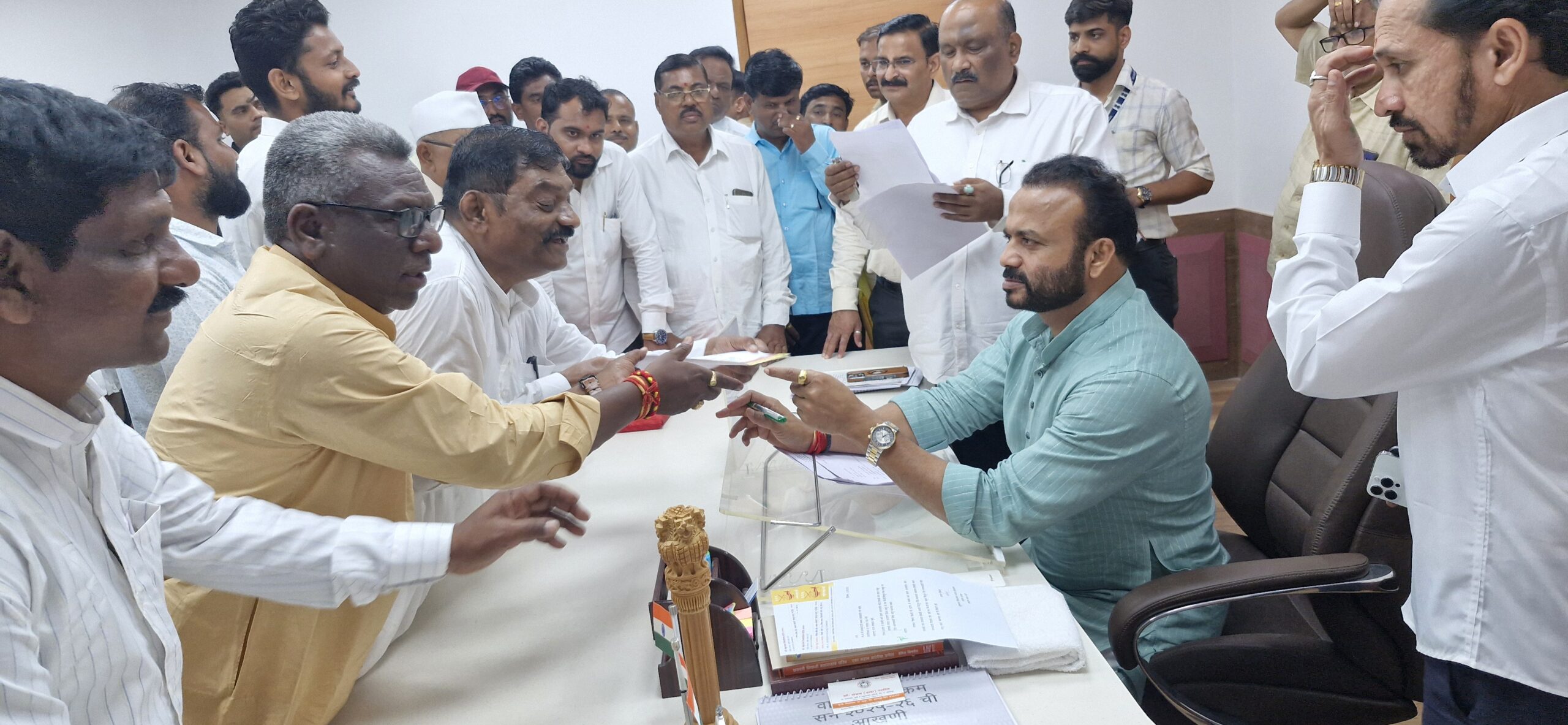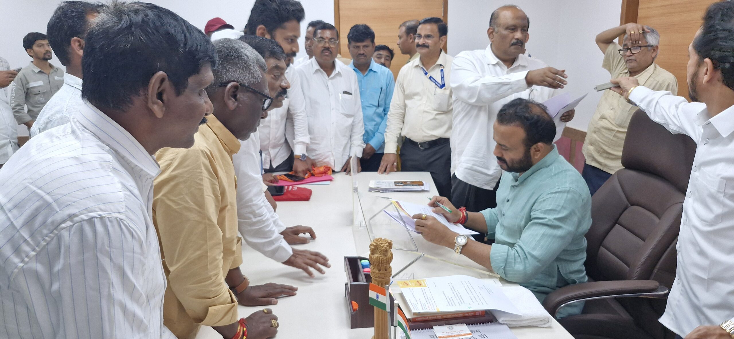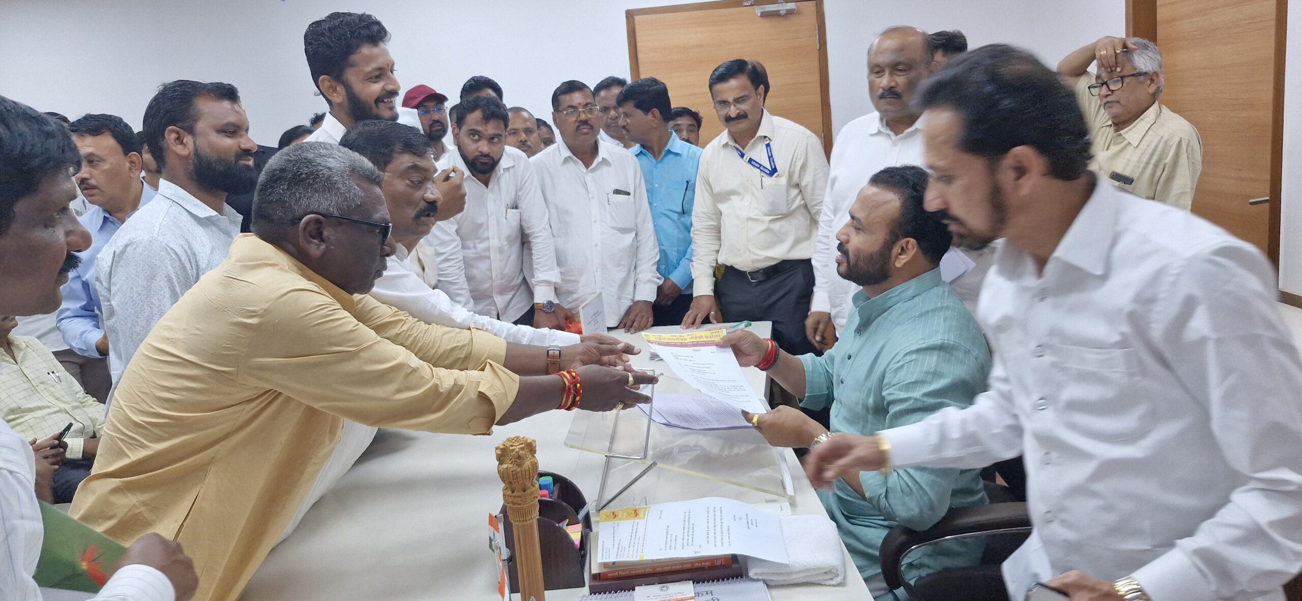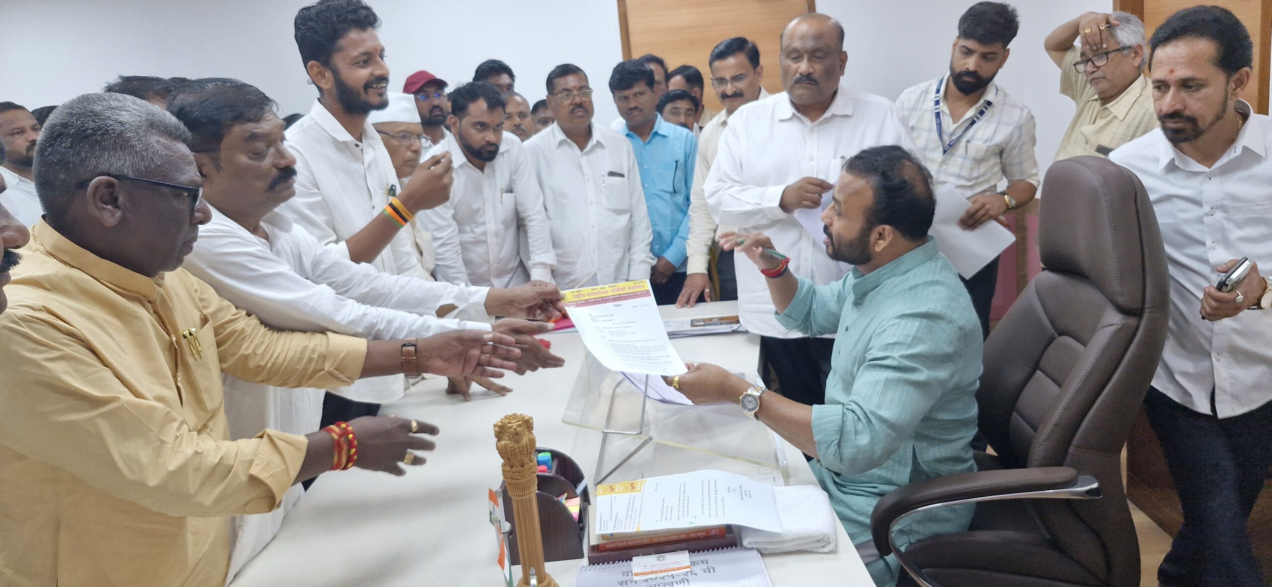 निवेदन सादर  करते सत्यशोधक शंकरराव लिंगे,
