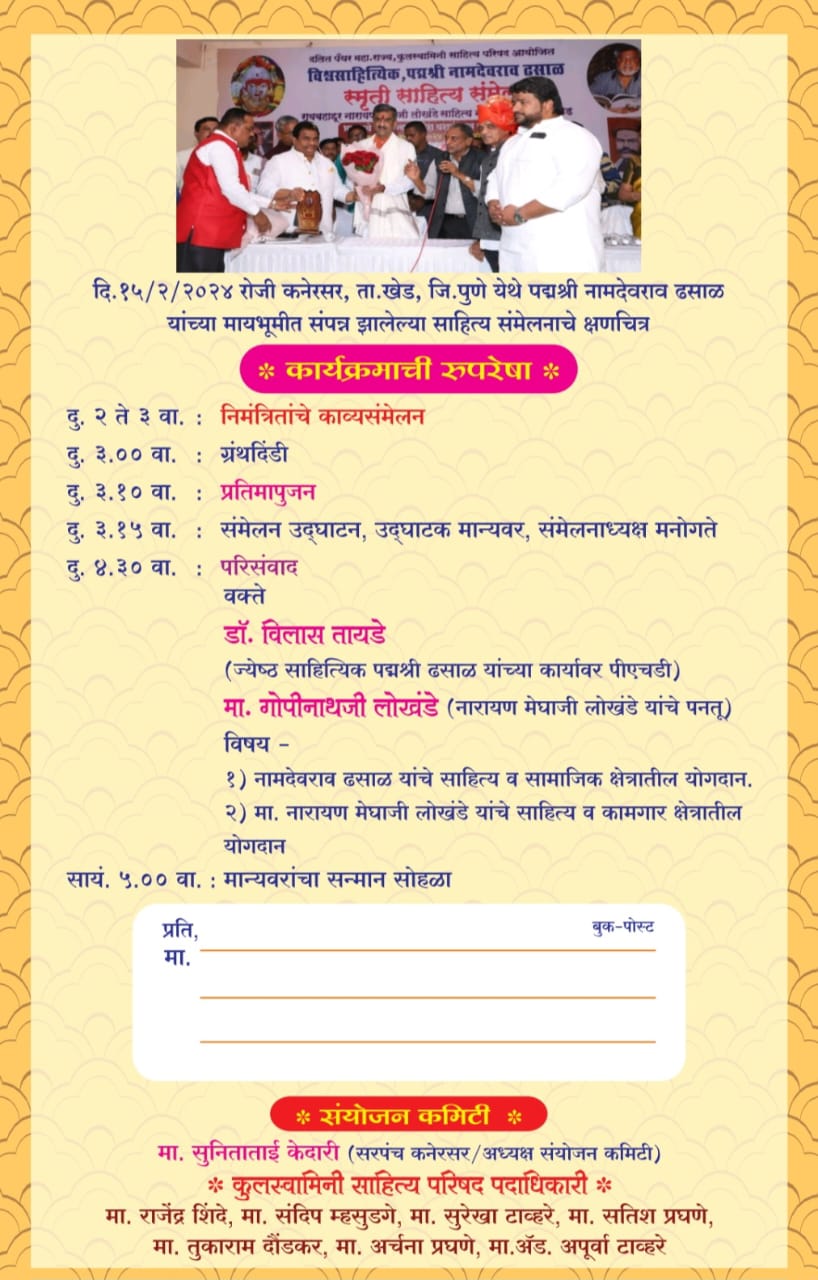 l मुंबईत विश्वसाहित्यिक पद्मश्री नामदेवराव ढसाळ स्मृती साहित्य संमेलन