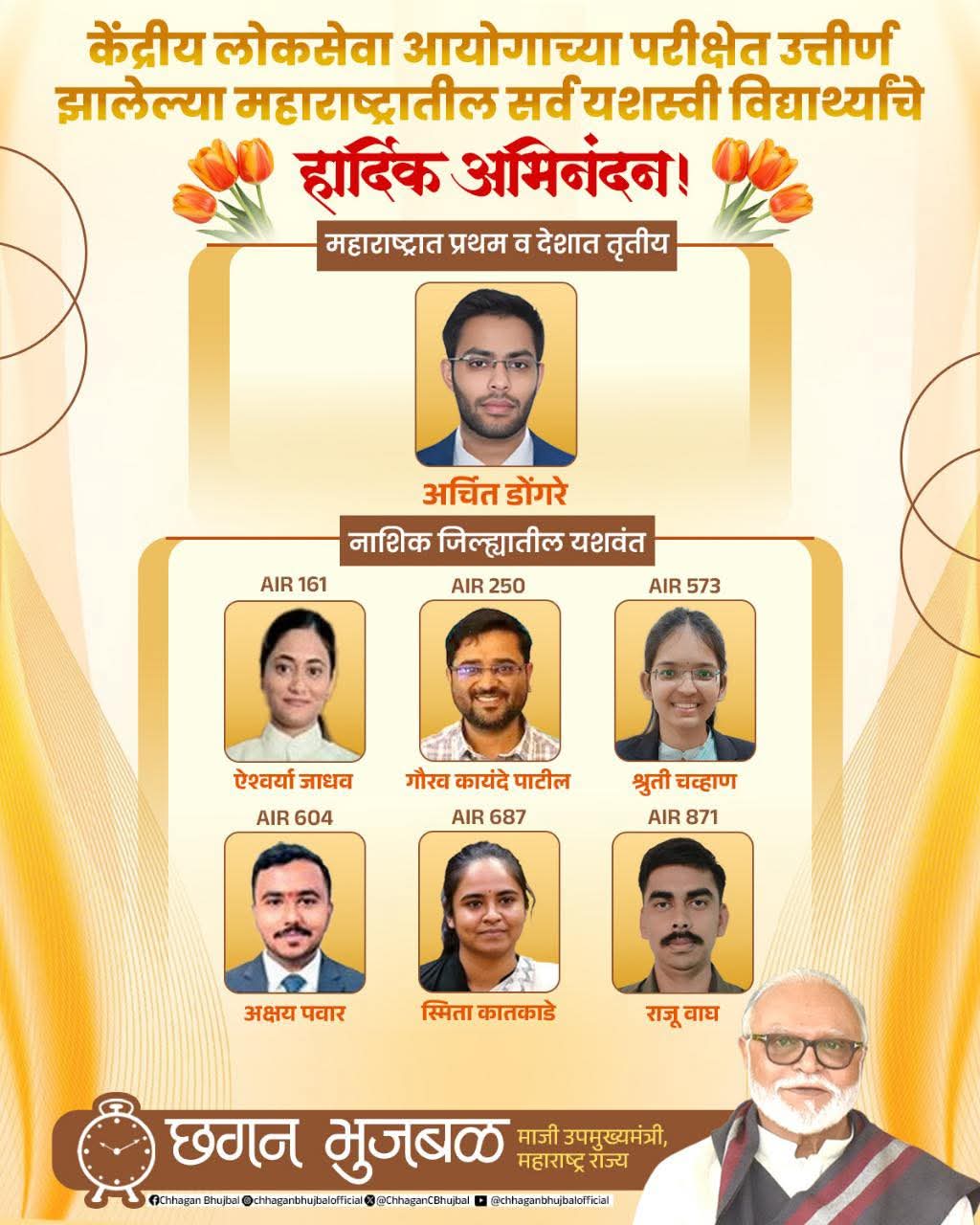 या सर्व यशस्वीतांचे मनापासून अभिनंदन! तसेच आगामी काळात आपापल्या पदाच्या माध्यमातून देशाची व देशवासीयांची उत्तम सेवा त्यांच्या हातून घडो, यासाठी मनापासून शुभेच्छा!
