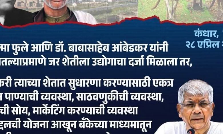 महात्मा फुले आणि डॉ. बाबासाहेब आंबेडकर यांनी सांगितल्याप्रमाणे जर शेतीला उद्योगाचा दर्जा मिळाला तर,