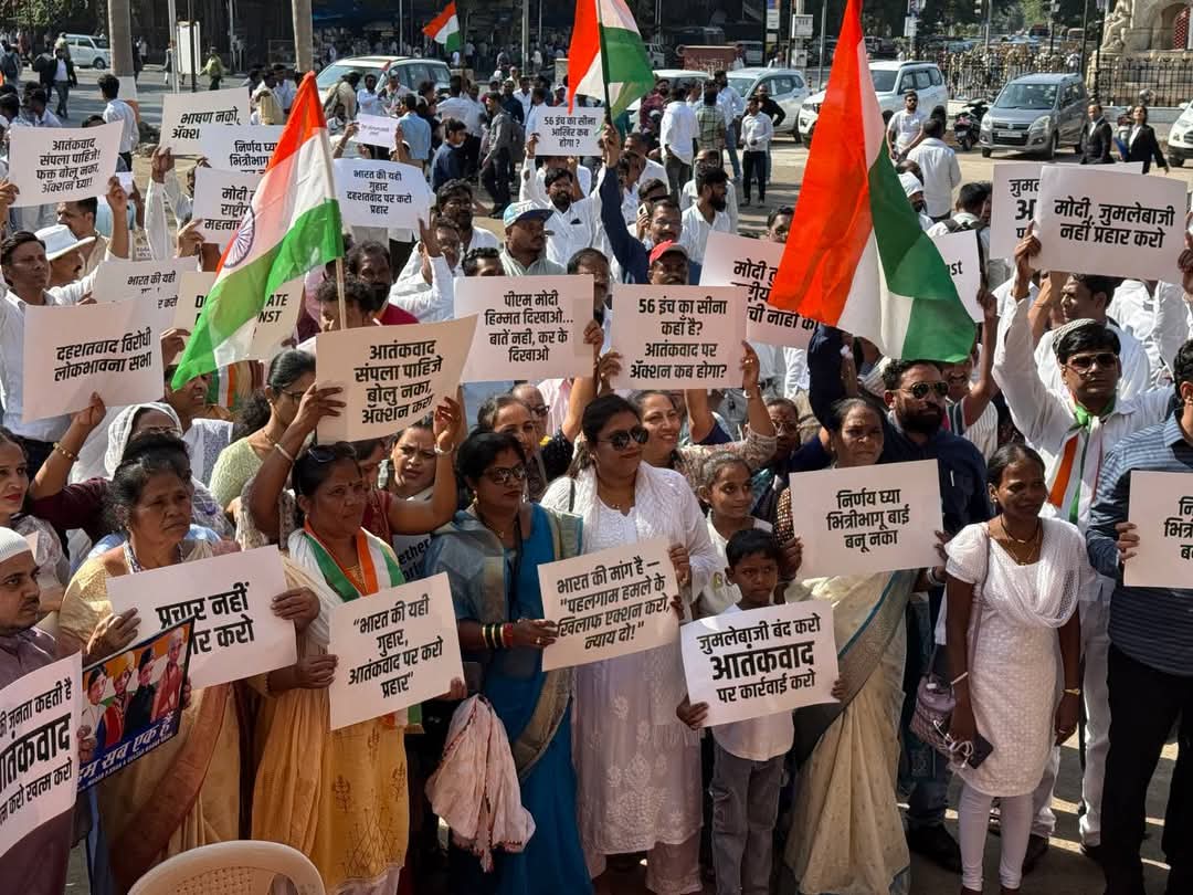 दहशतवादाविरोधात केंद्र सरकारने ठोस कारवाई करावी या मागणीसाठी मुंबईतील हुतात्मा स्मारक येथे मोठ्या संख्येने नागरिक जमले होते. यावेळी पहलगाम येथे झालेल्या दहशतवादी हल्ल्यात शहीद झालेल्या नागरिकांना आदरांजली अर्पण करण्यात आली.