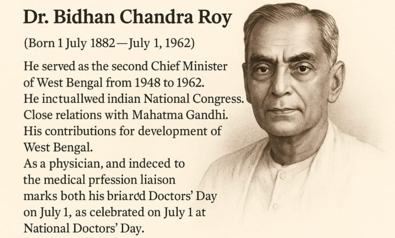 डॉ. बिधान चंद्र रॉय हे एक प्रसिद्ध भारतीय डॉक्टर, राजकारणी आणि पश्चिम बंगाल राज्याचे मुख्यमंत्री होते. ते 1 जुलै 1882 रोजी जन्मले आणि 1 जुलै 1962 रोजी निधन झाले.