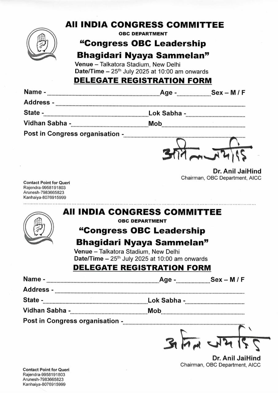 दिल्लीच्या तालकटोरा स्टेडियममध्ये २५ जुलै २०२५ला होणार्या काँग्रेसच्या OBC नेतृत्व भागीदारी न्याय संमेलनचे मराठीत सविस्तर विश्लेषण खालीलप्रमाण