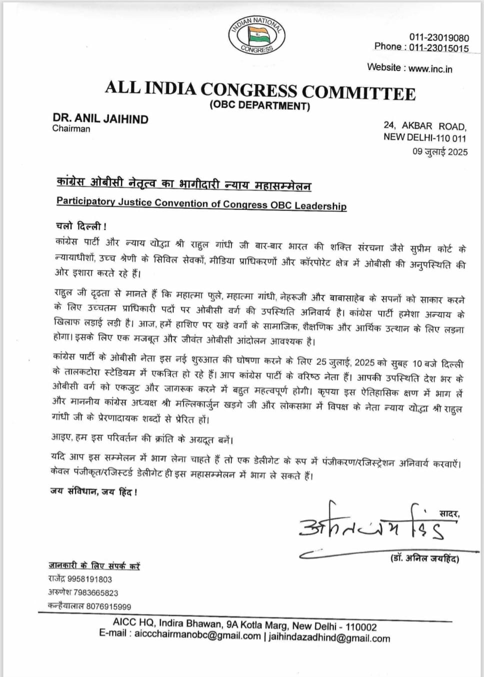 – डॉ. अनिल जय हिंद – OBC राष्ट्रीय अध्यक्ष